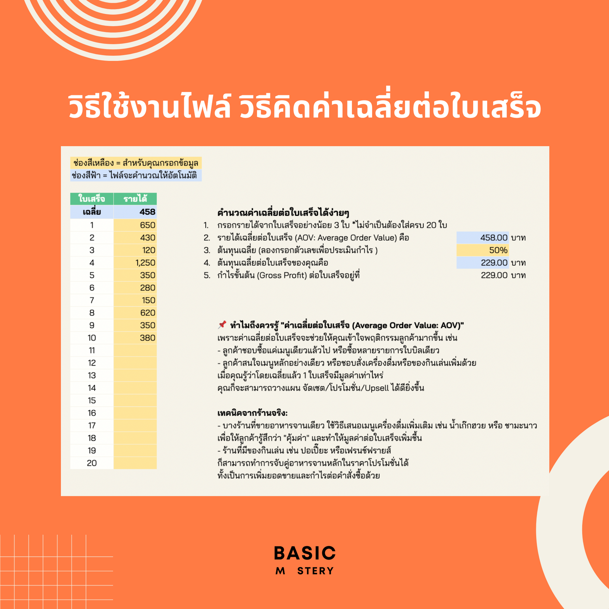 ✅ วิเคราะห์กำไรธุรกิจด้วยตัวเอง: ต้นทุนที่เป็นอยู่สูงไปไหม ค่าเช่าไม่ควรเกินเท่าไหร่ เงินเดือนพนักงานสูงไปรึเปล่า ... ถ้าจะให้ดีไม่ควรเกินเท่าไหร่? วิเคราะห์ได้ด้วยการกรอกข้อมูลลงในไฟล์ เหมือนมีที่ปรึกษาส่วนตัว